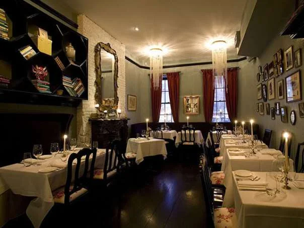 That night my parents and I had dinner at Bobo in the West Village, which looked just like I hoped it would look. Here. I stole this picture from some dude's blog, so that you can share in the glory. (Thanks, stranger.) See that booth under the window on the right? That's our table. It was a good one.