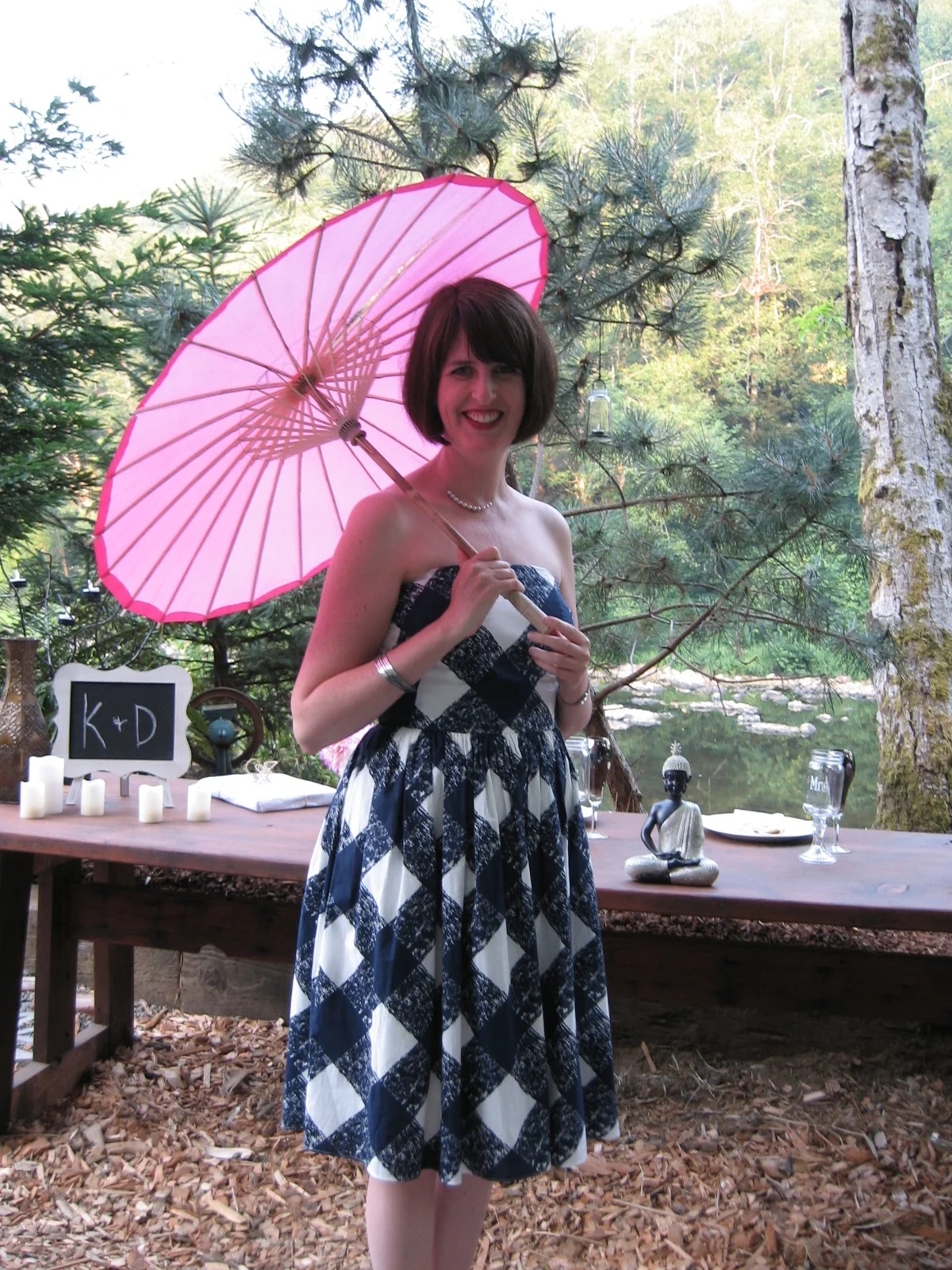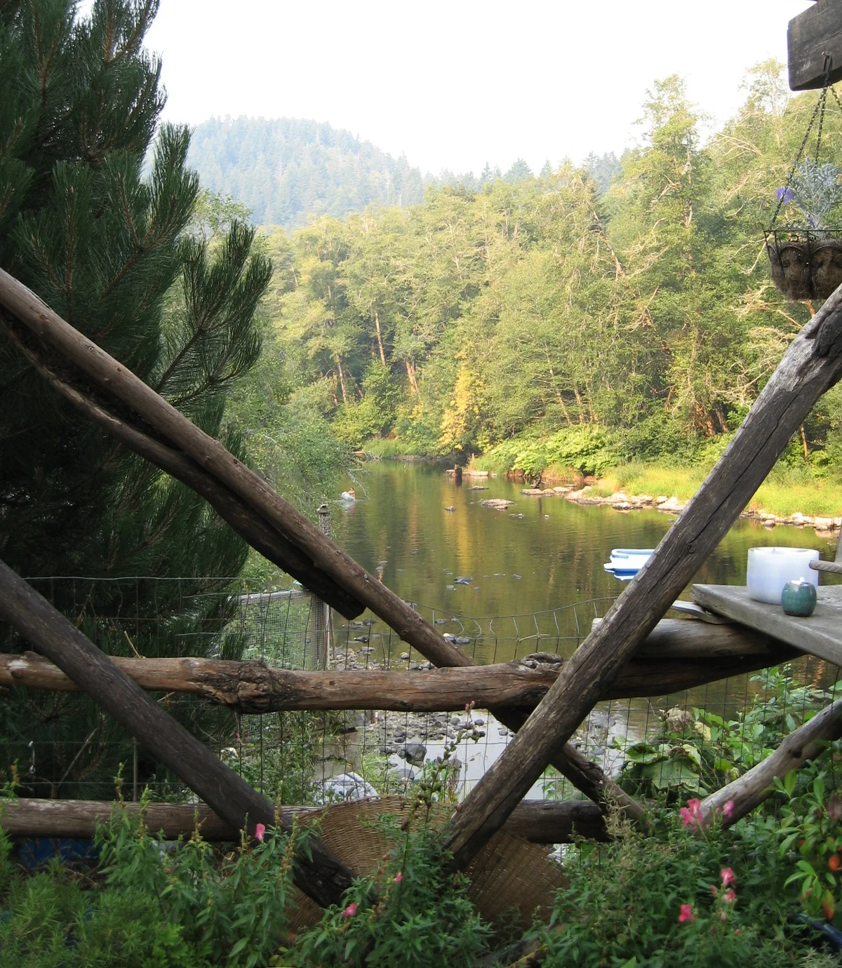 It had already been established that I would be staying at the handy Elderberry Inn (the nearness of which was really quite miraculous since there is no town to speak of anywhere around), so I knew I wouldn't be camping, which was nice. (The groom has known me for 30 years or so; he loves me and he knows I have no tent.) Nevertheless, I did have some anxiety about how I was going to get back to the motel since everyone else was camping and just who would be driving this shuttle after many hours of wedding cocktails/bluegrass? I put some sweatpants in my bag in case I ended up having to sleep in someone's tent on the riverbank. If, indeed, a riverbank were even involved.