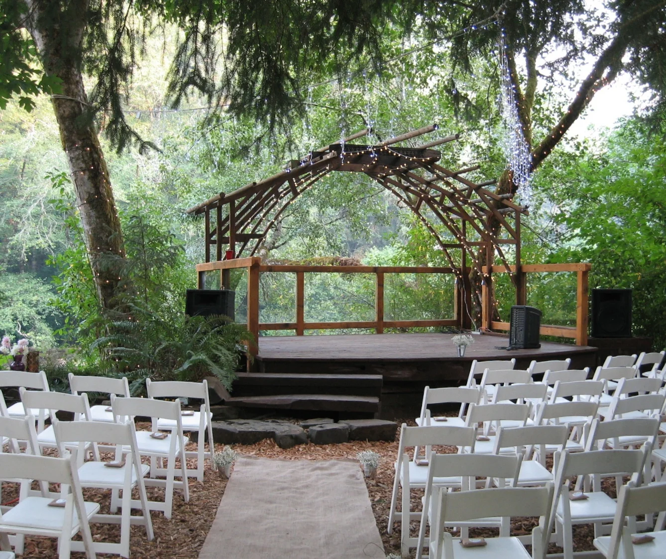 Well. Aside from one insane hairpin turn and a very long gravel road, it wasn't all that crazy after all. A small, eager pack of boys waved me down to show me where to park in the neighbor's field. A smiley young man named Max showed up in a car and drove me still further up the gravel road to...a house. A house! No one had ever mentioned a house. The back garden of this house had been transformed into a veritable fairy kingdom. In no way did it resemble a campground or a music festival. It looked like, well, a perfect place for a wedding.